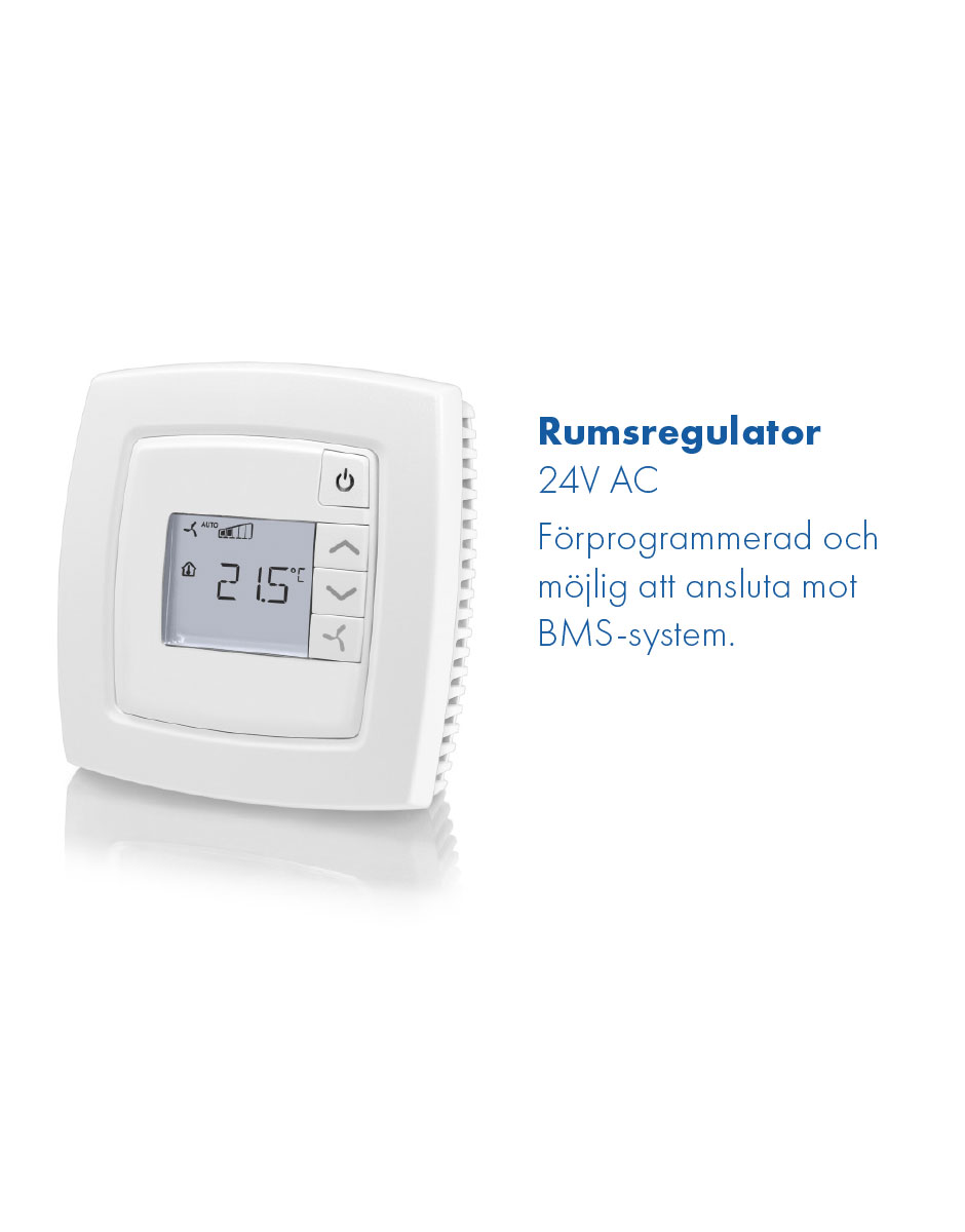 Rumsregulator 24V AC Förprogrammerad och möjlig att ansluta mot BMS-system.
