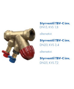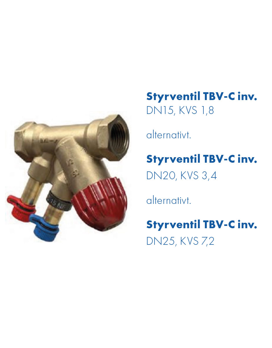 Styrventil TBV-C inv. DN15, KVS 1,8 alternativt Styrventil TBV-C inv. DN20, KVS 3,4 alternativt Styrventil TBV-C inv. DN25, KVS 7,2